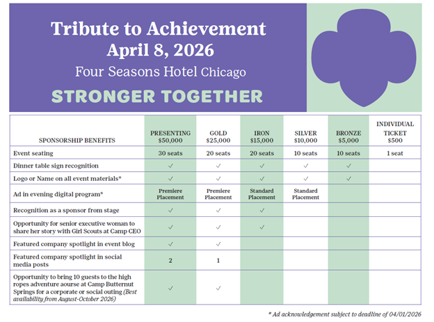 Girl Scouts of Greater Chicago and Northwest Indiana 2026 Tribute to Achievement