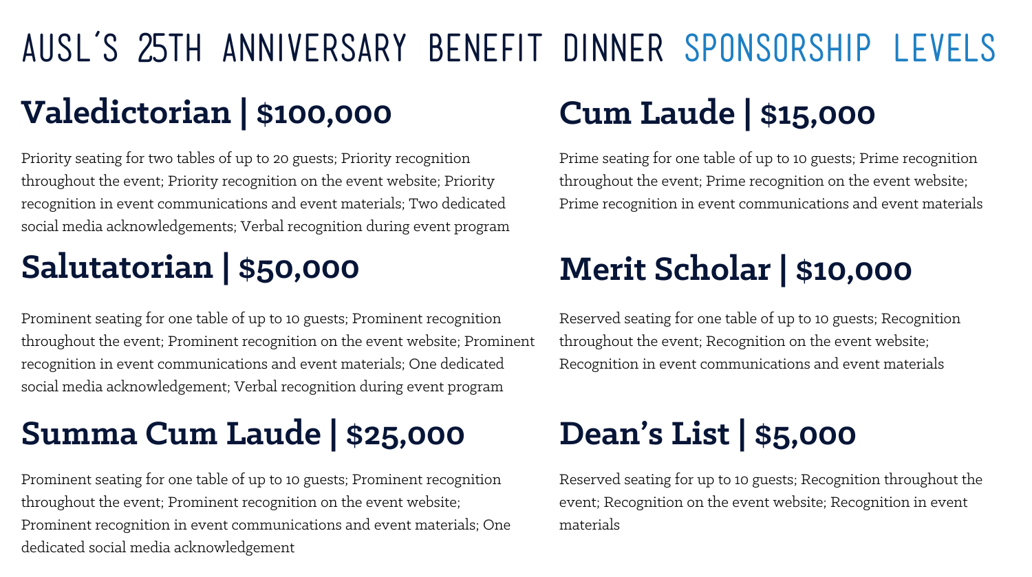 AUSL’s 25th Anniversary Benefit Dinner